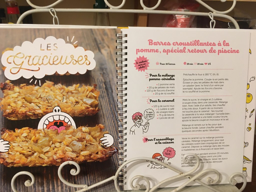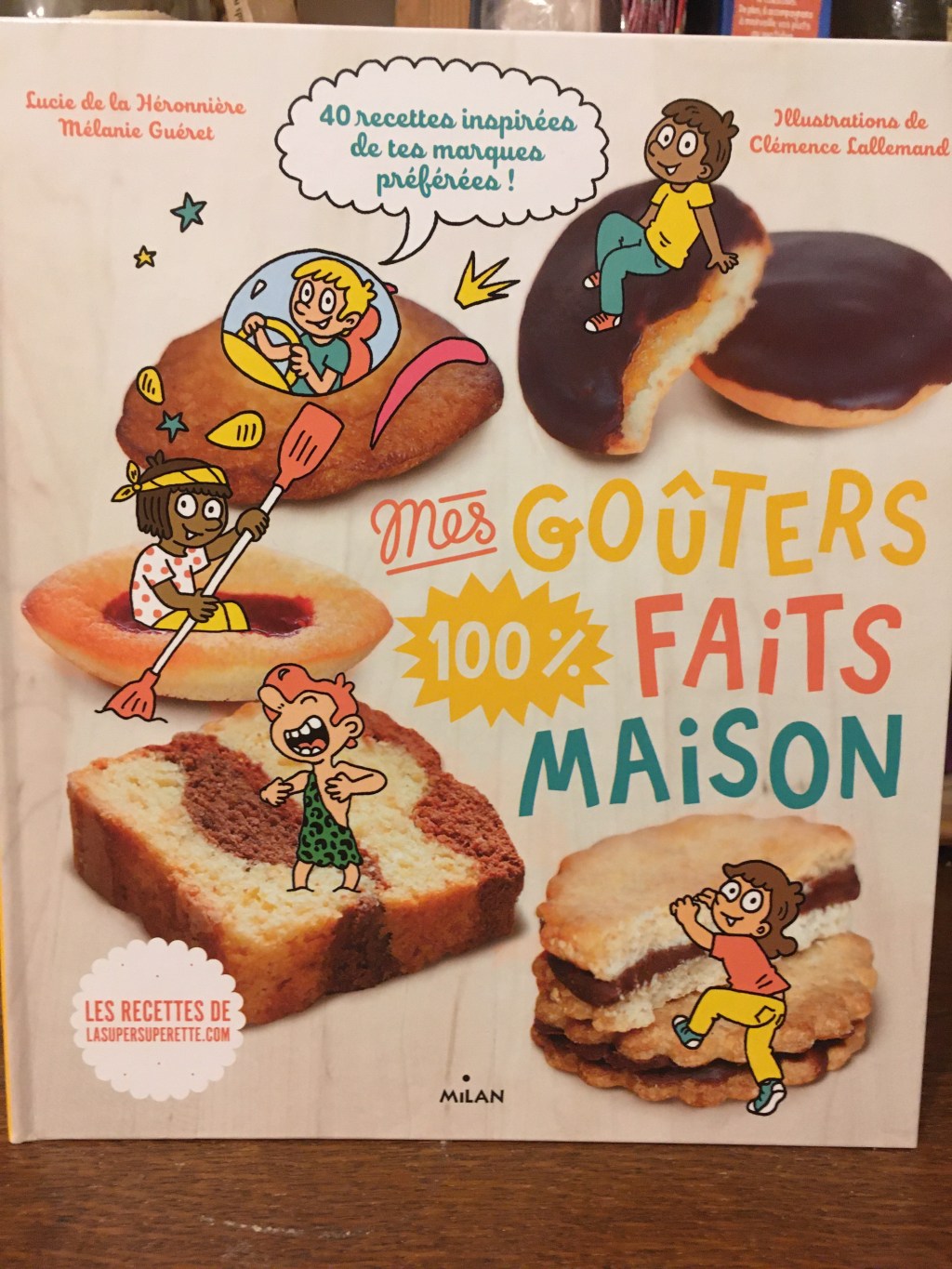 Un jour en passant à la librairie. J’ai découvert « Mes goûters 100% faits maison ». Je le feuillette, car je suis en général très déçu par les livres de cuisine jeunesse. Les recettes sont souvent dessinées, le texte n’est pas attrayant et je n’ai même pas envie de les tester. Ici excellente surprise.