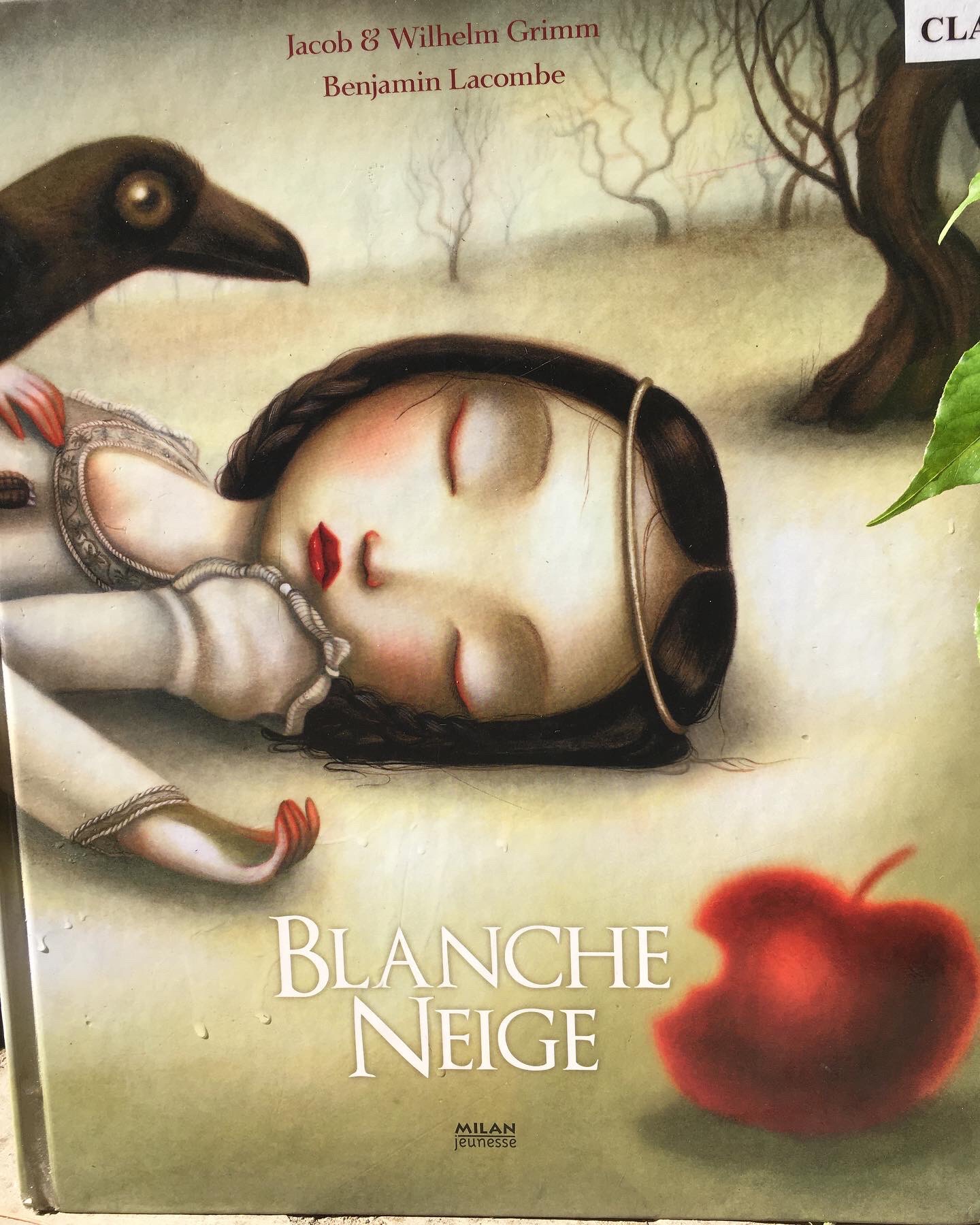 Nous avons ici une version bien particulière de Blanche Neige, portée par l’illustration de Benjamin Lacombe. Le récit se fait plus sombre. La dominance du noir, les dessins à l’esquisse donne une profondeur au texte. Sous le crayon, on tremble pour Blanche Neige, on devine la méchanceté profonde de sa belle-mère.