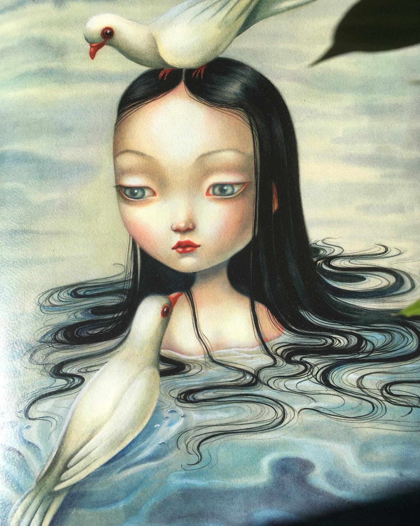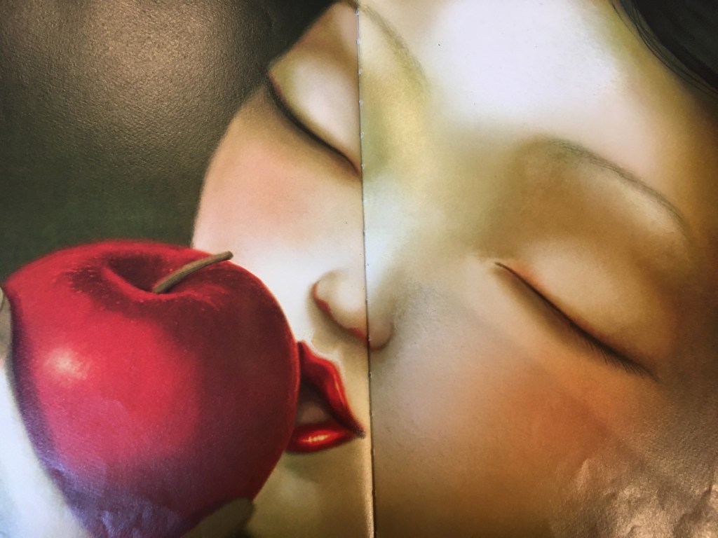 C’est sur la scène de la pomme que je tire mon chapeau à Benjamin Lacombe. Magnifique, suave et envoûtante. Je n’ai pas d’autres mots pour qualifier. Cette illustration est presque charnelle.