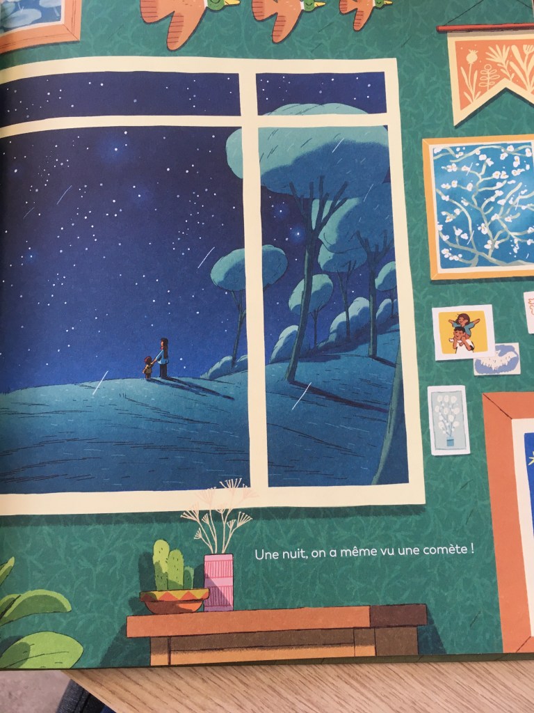 Je trouve cet album magnifique. Les illustrations sont douces, belles et soignées. Les couleurs sont magiques et le passage de la comète onirique.