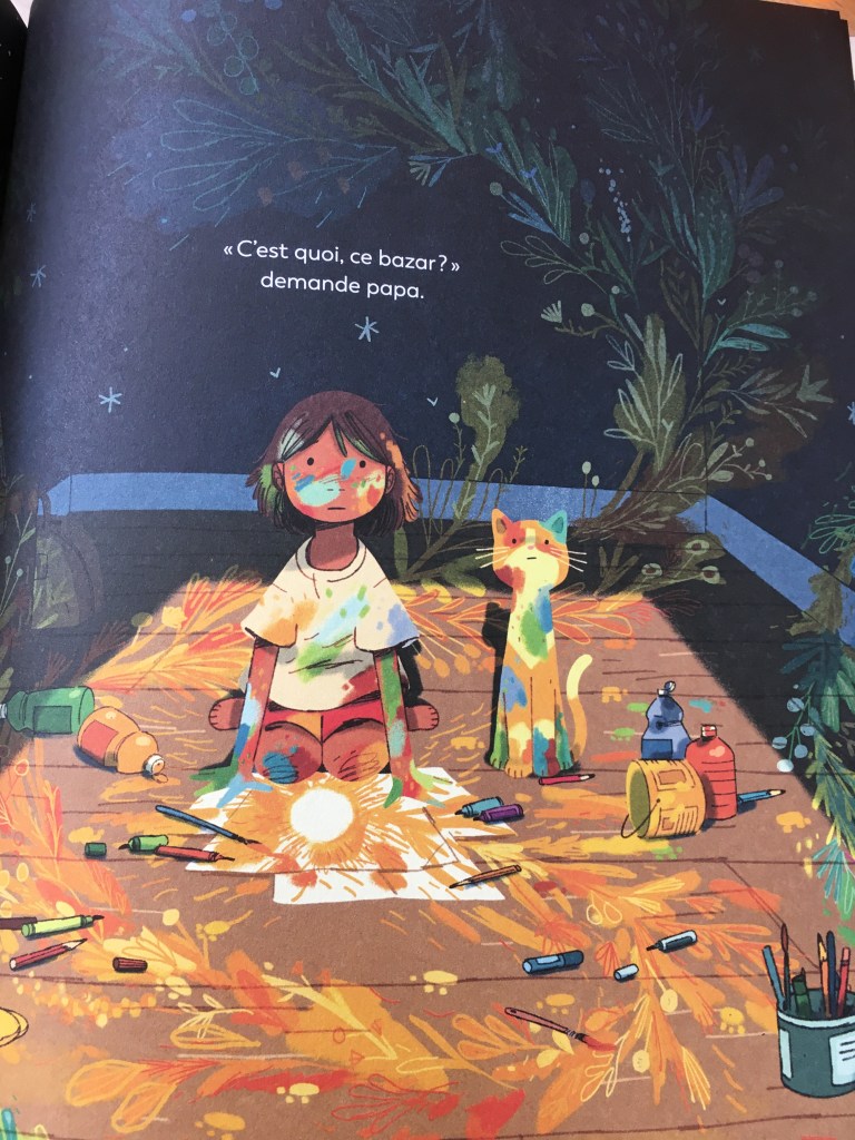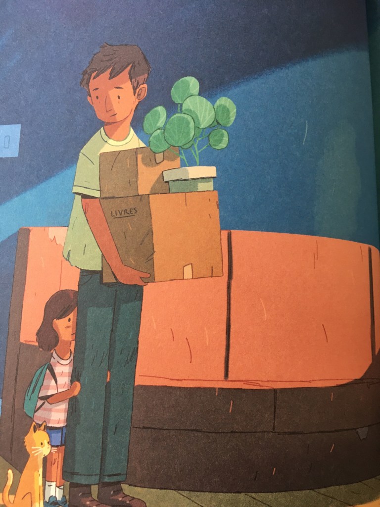 L’autre raison qui me fait aimer ce livre, c’est la relation père-fille. Les albums montrent souvent des relations maman-enfant. C’est beau de voir un papa avec sa fille. Cela donne une autre vision des choses, qui donne une profondeur particulière au texte.