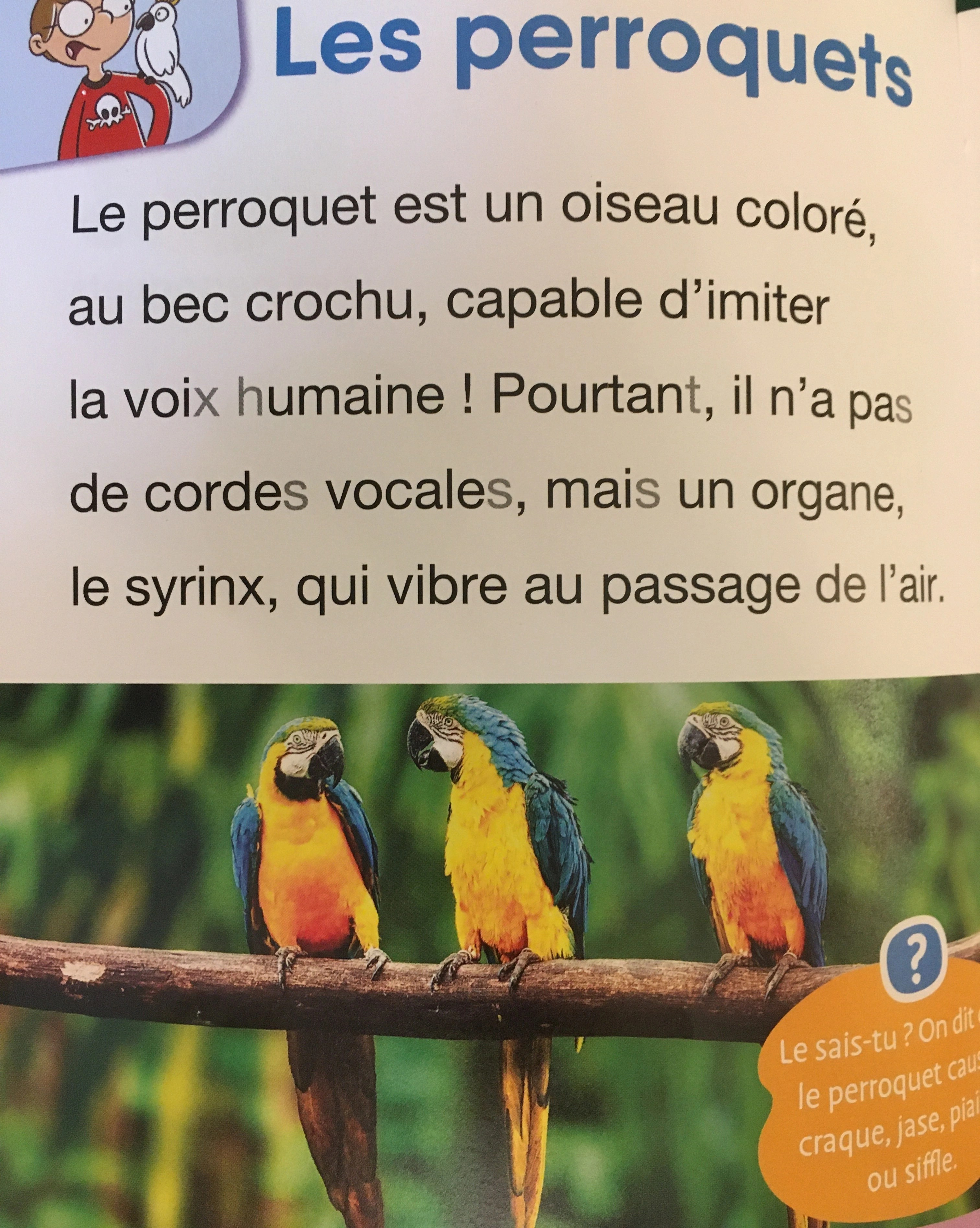 Chaque oiseau à environ trois pages informatives. Les informations sont claires et bien classées.